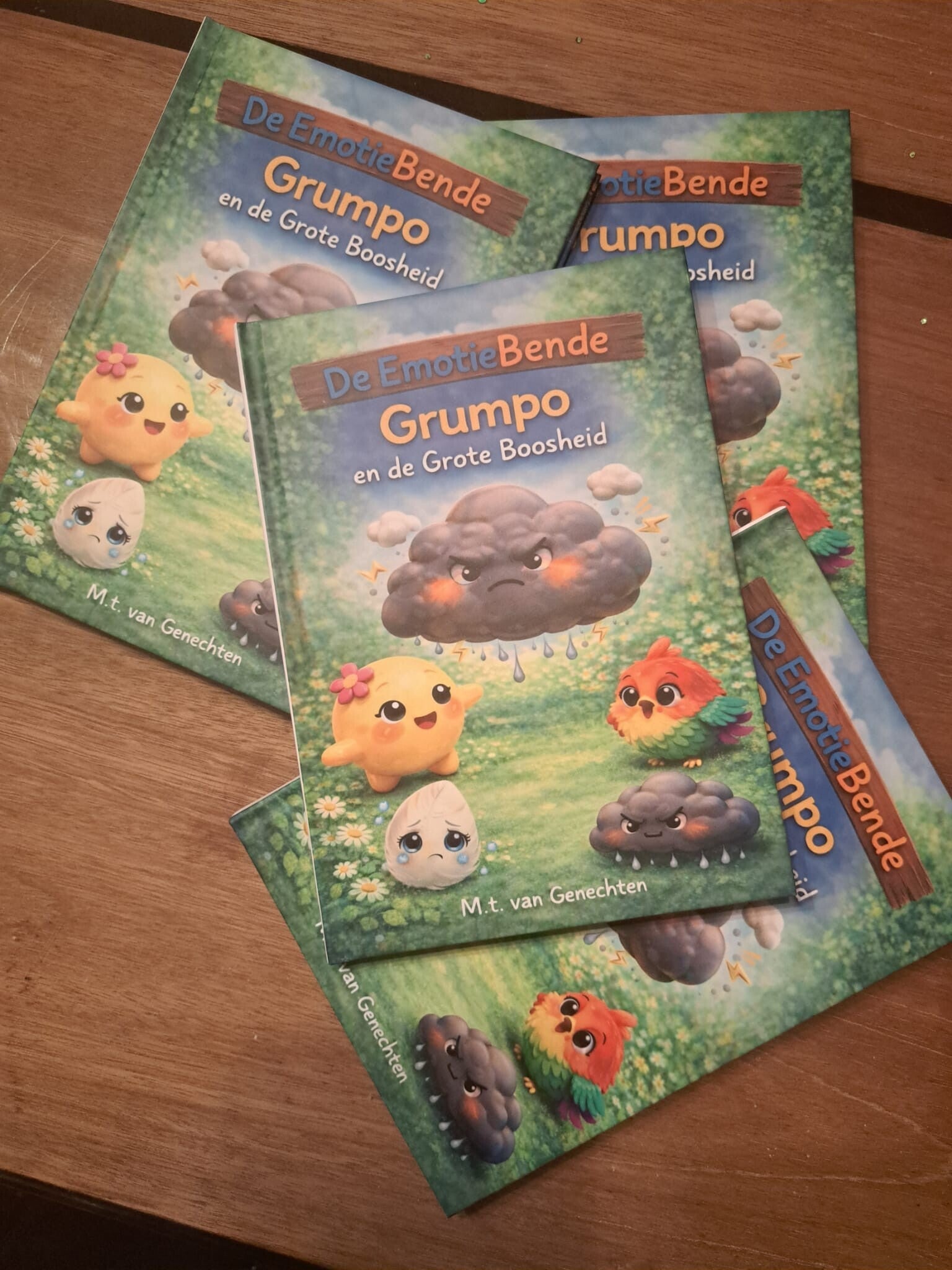 Maak kennis met 'De EmotieBende', een unieke serie kinderboeken die ik met veel liefde zelf schrijf om kinderen te helpen hun gevoelens te begrijpen en te uiten.